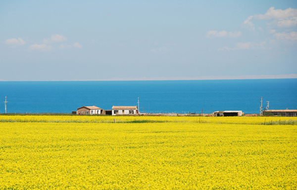 坐火车出西宁1小时,隔窗而望,就是青海湖。